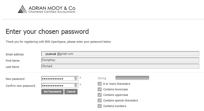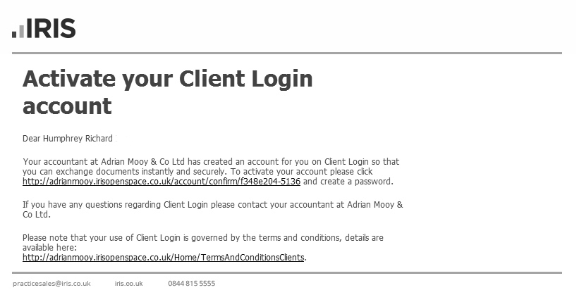 As a first time user it is important that you open the "Client Login Client Registration" email first as here you will set up your password for future access to IRIS OpenSpace.