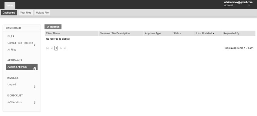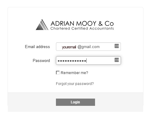 An existing OpenSpace user will start here after clicking the link in the "New file(s) added for electronic signature by Adrian Mooy & Co Ltd" email.